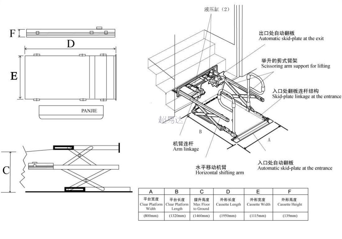 最大提升高度: MAX1460mm(升降機厚度中心線上下各730MM)